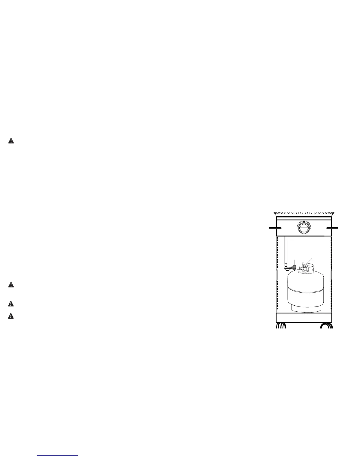 • LP cylinder must be stored outdoors in a well ventilated area