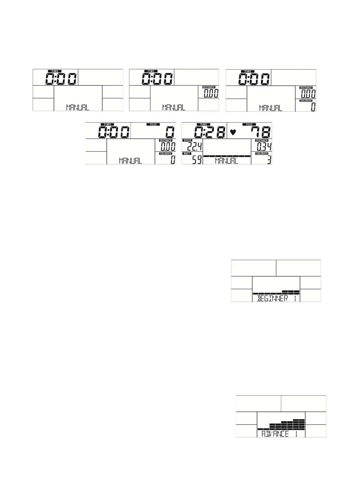 Anfänger). Nach der Auswahl des Modus („MODE/ENTER“ zur Bestätigung), erscheint „BEGINNER 1“ (siehe Abb.
