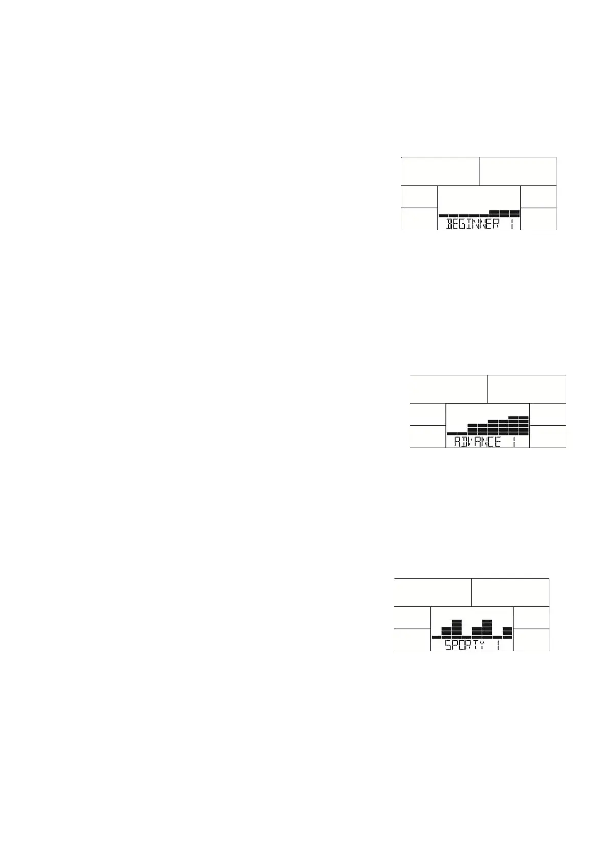 ithin this mode you can exercise with a program profile (preset). Mountain- and valley courses for beginners: After