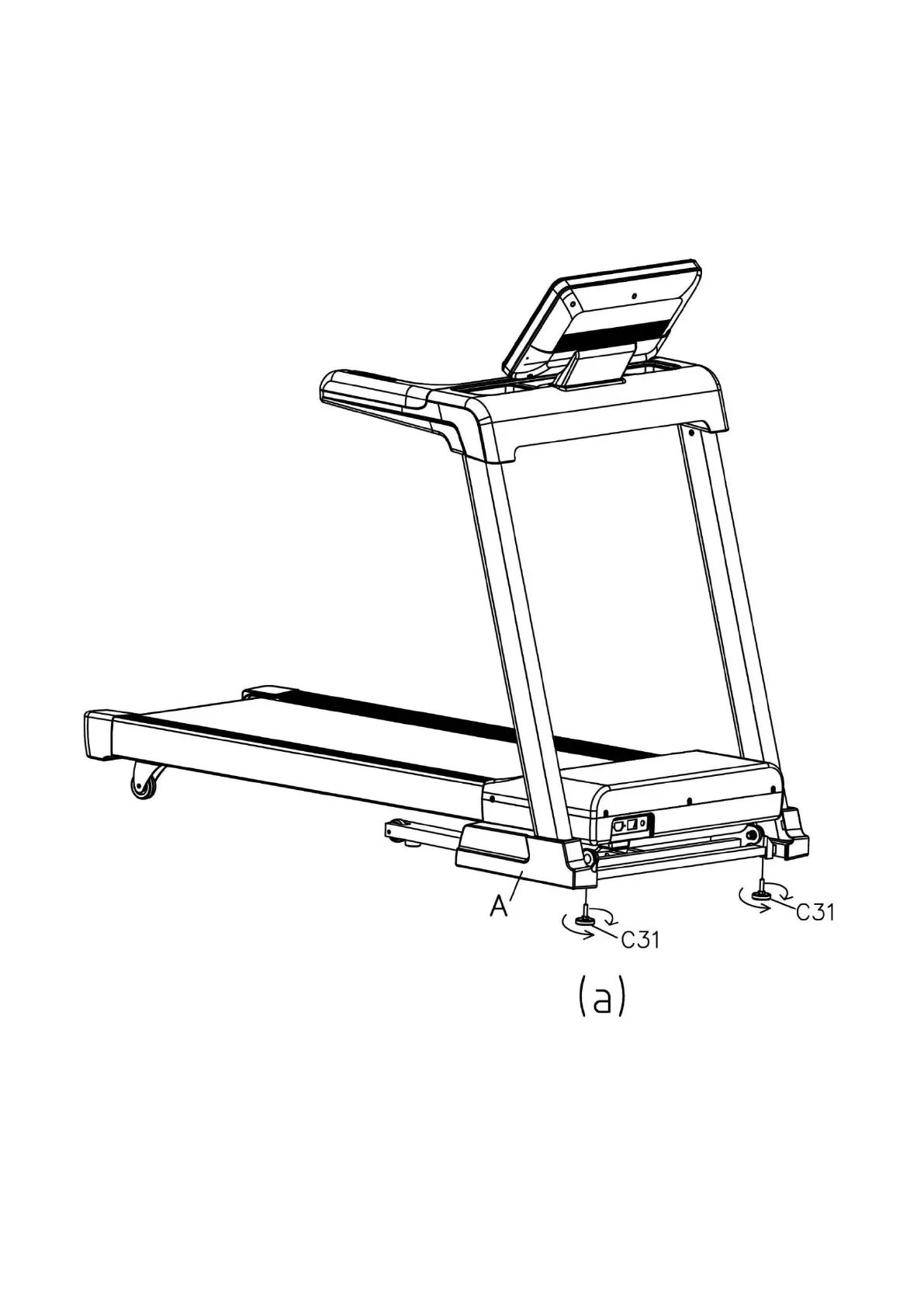You can balance the treadmill by adjusting the foot pad (C31) if the ground is uneven; turning the