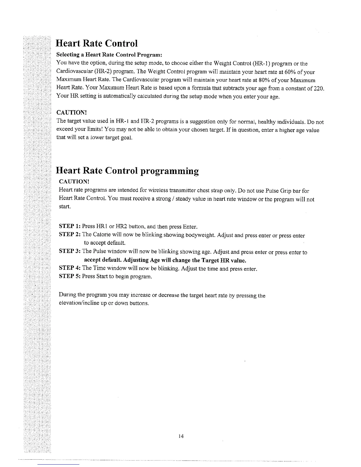 Fuel X4 - Heart Rate Control Programs; Program Selection (HR-1;HR-2); HRC Program Setup