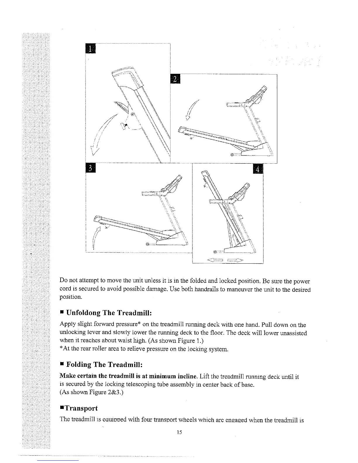 Fuel X4 - Treadmill Folding and Transport; Unfolding the Treadmill; Folding the Treadmill; Transporting the Treadmill
