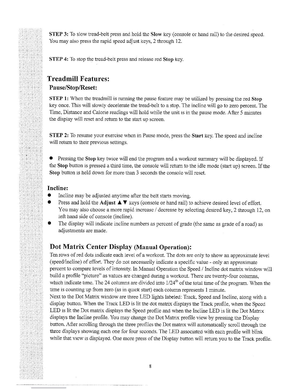 Fuel X4 - Treadmill Control Functions; Dot Matrix Display