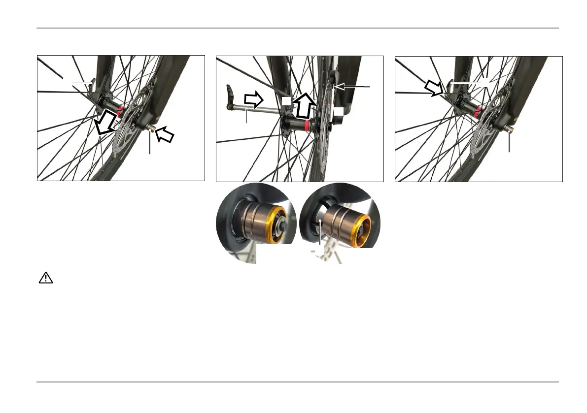 - Insert the front wheel (3) into the dropouts