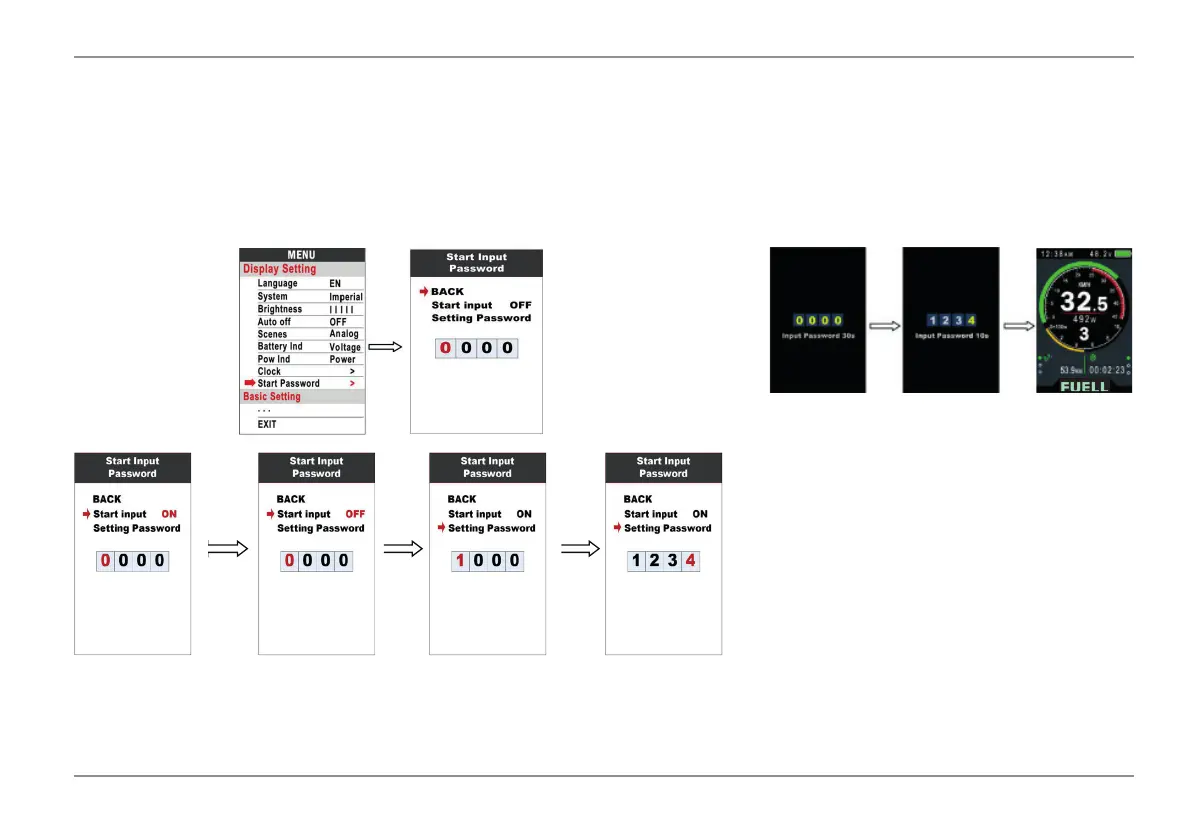 Power On: Press the power key to enter the password menu. If the option "Start input”