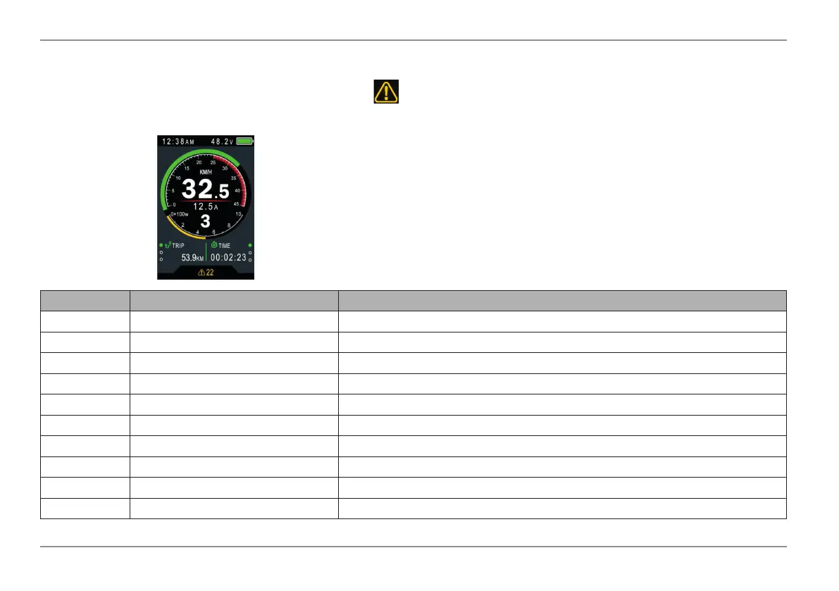 The model 850C can display warning notice. The symbol is displayed along with the error code at the bottom of the screen.