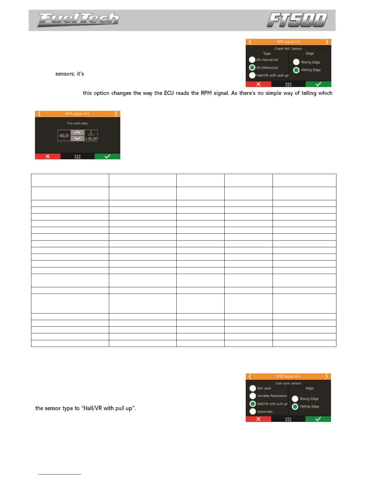 Hall/VR with pull-up: select when using Hall Effect RPM sensor or when