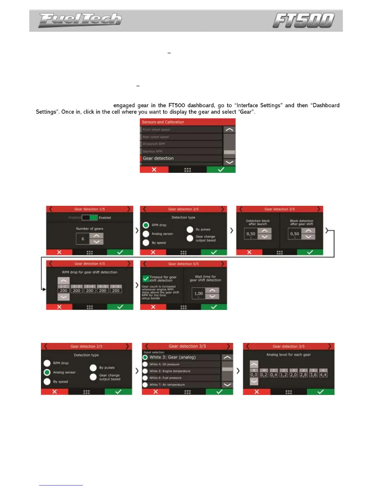 values are good to most cases. The fourth screen is for the RPM drop programming to each gear. The fifth screen is to