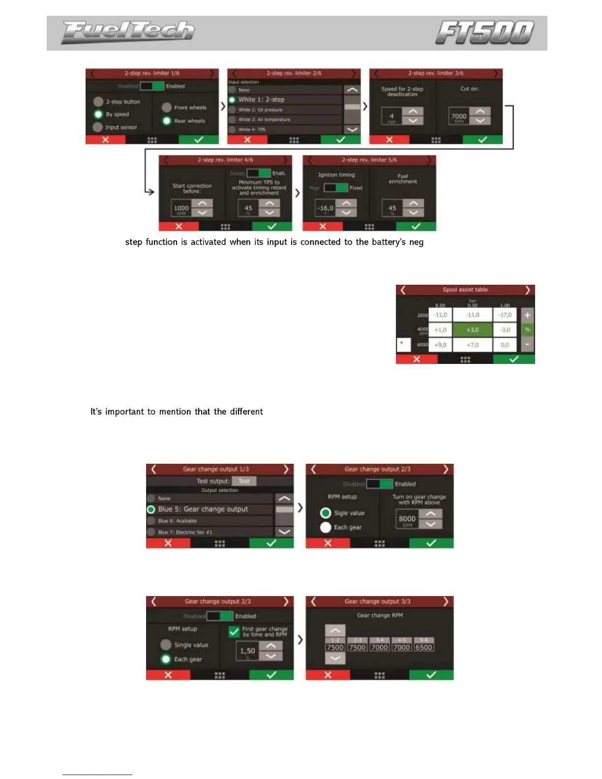 configure the time after the 2-step when the shift will happen. The third page will show the RPM to shift each gear.
