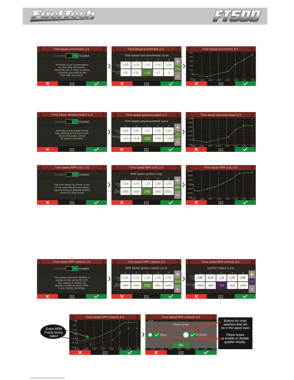 The first screen explains how the retard works. The next ones are the RPM and retard values. The last screen will