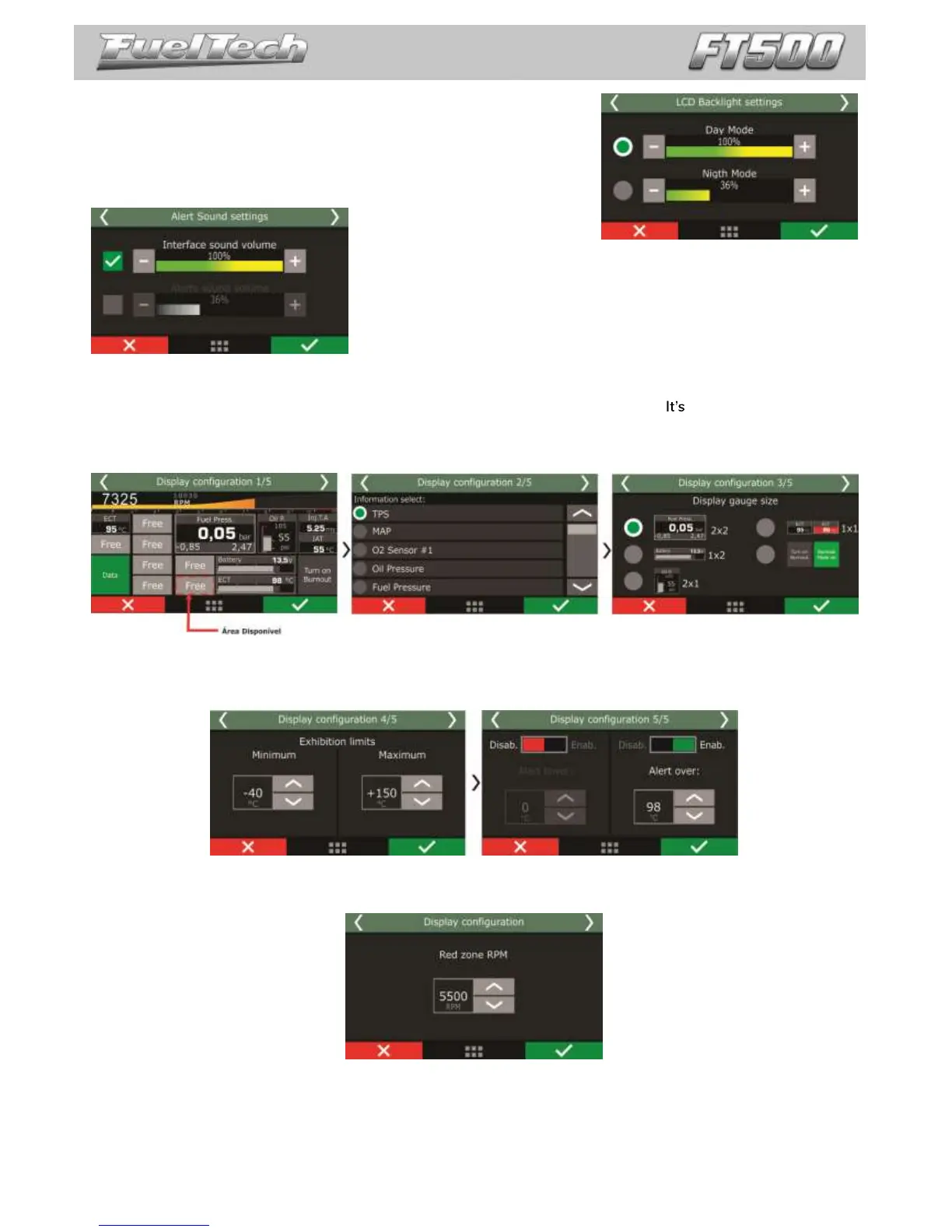 Adjust LCD brightness and select between night and day modes.