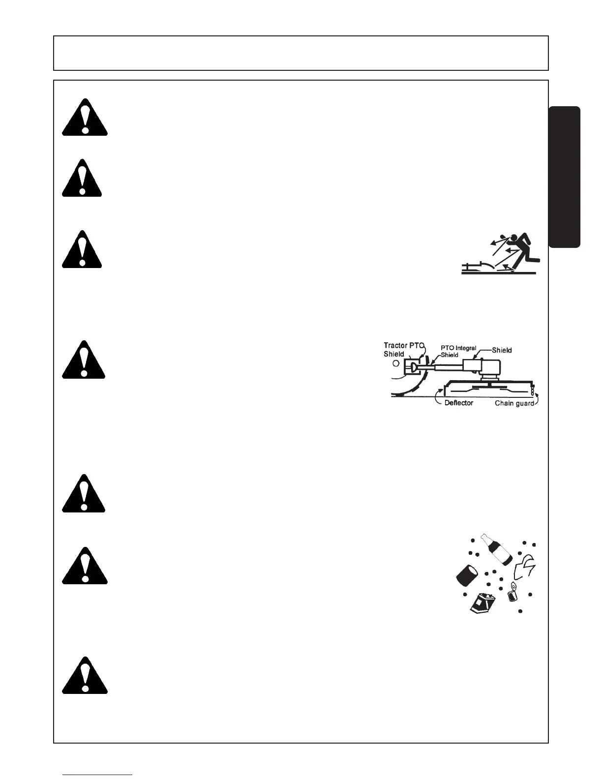 and to the sides of the tractor and mower. Make sure that you can clearly see and identify passersby,