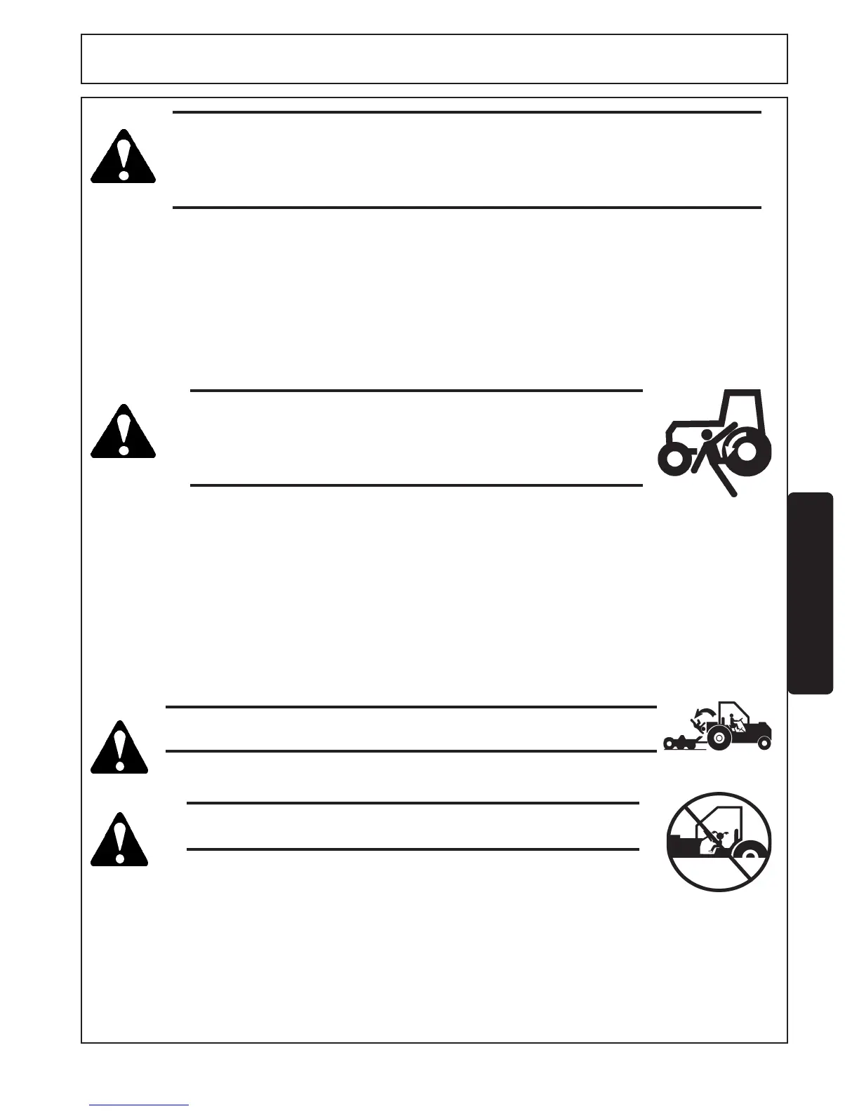 injured or killed from being ran over by both the tractor and mower. It is the operator’s responsibility to forbid