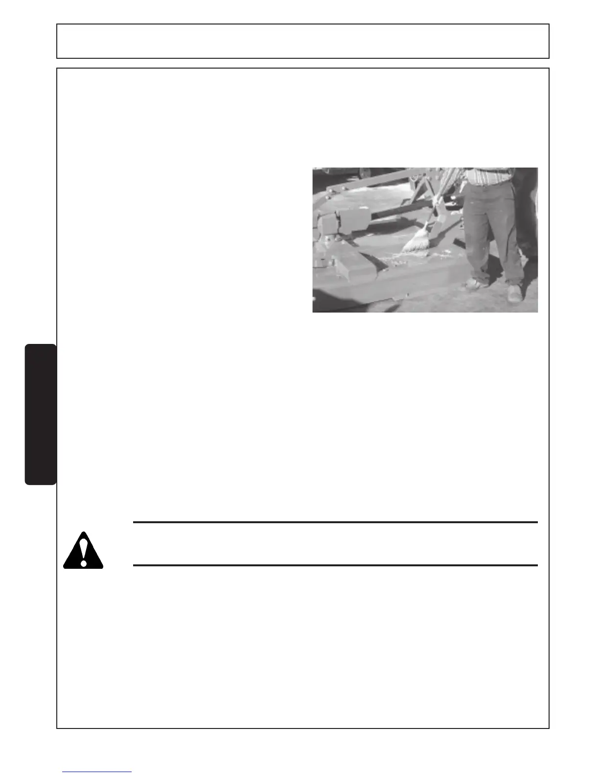 Never allow children to play on or around the Tractor and Implement. Children can slip
