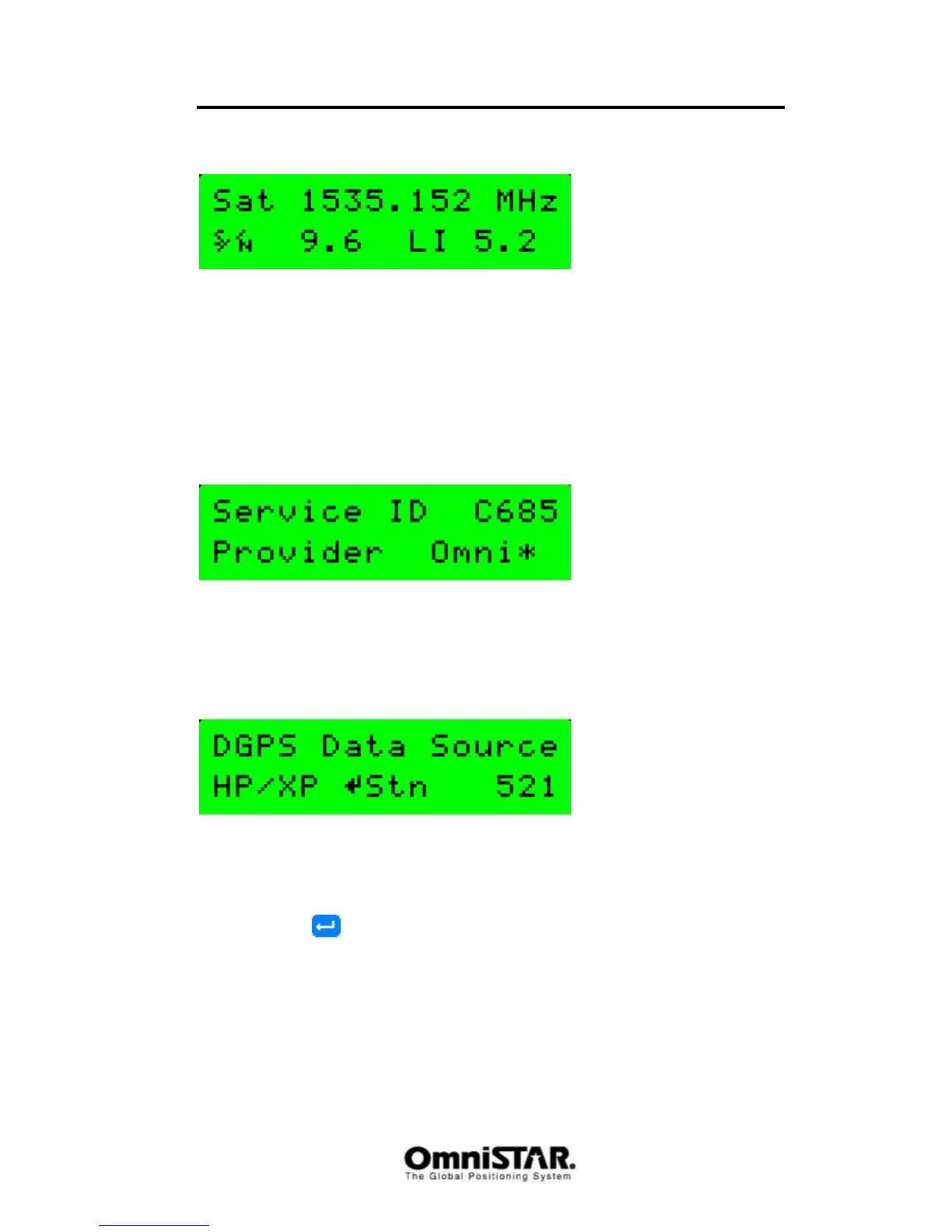 The Sat Tracking screen shows information about the satellite used for DGPS