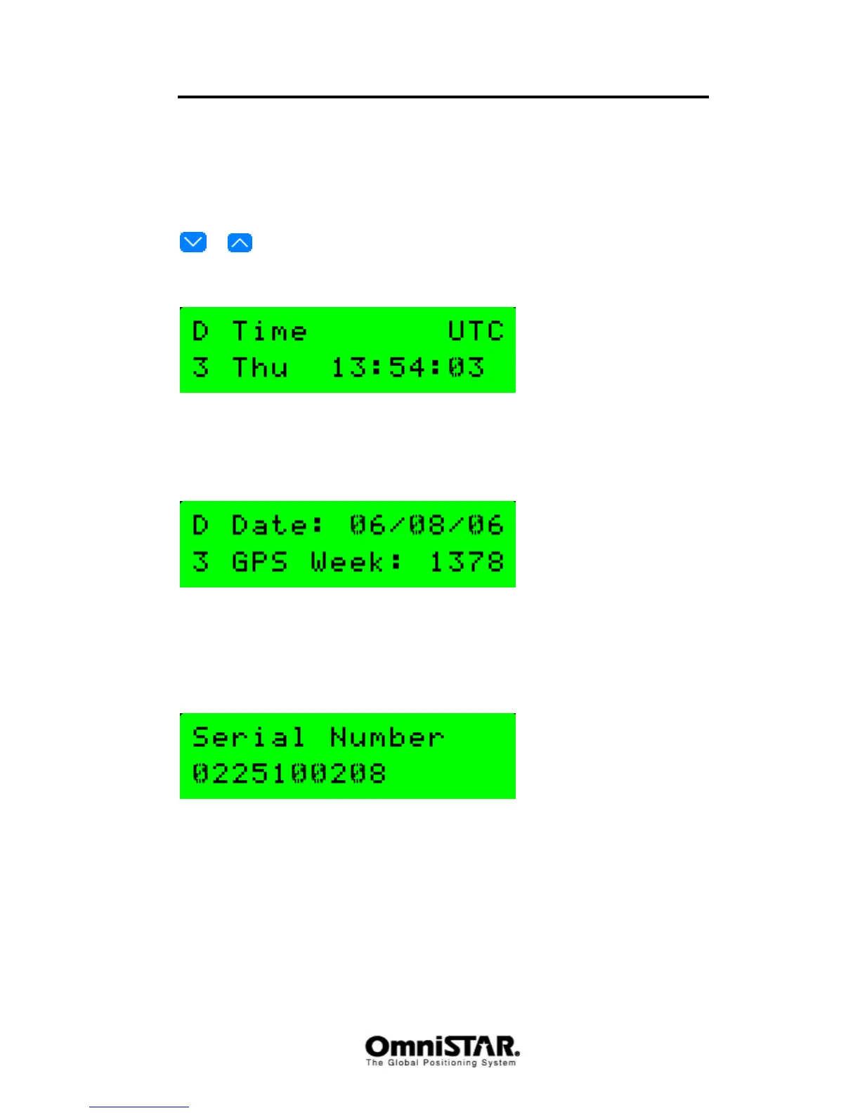 The UTC Date and GPS Week screen shows the current UTC-date (mm/dd/yy