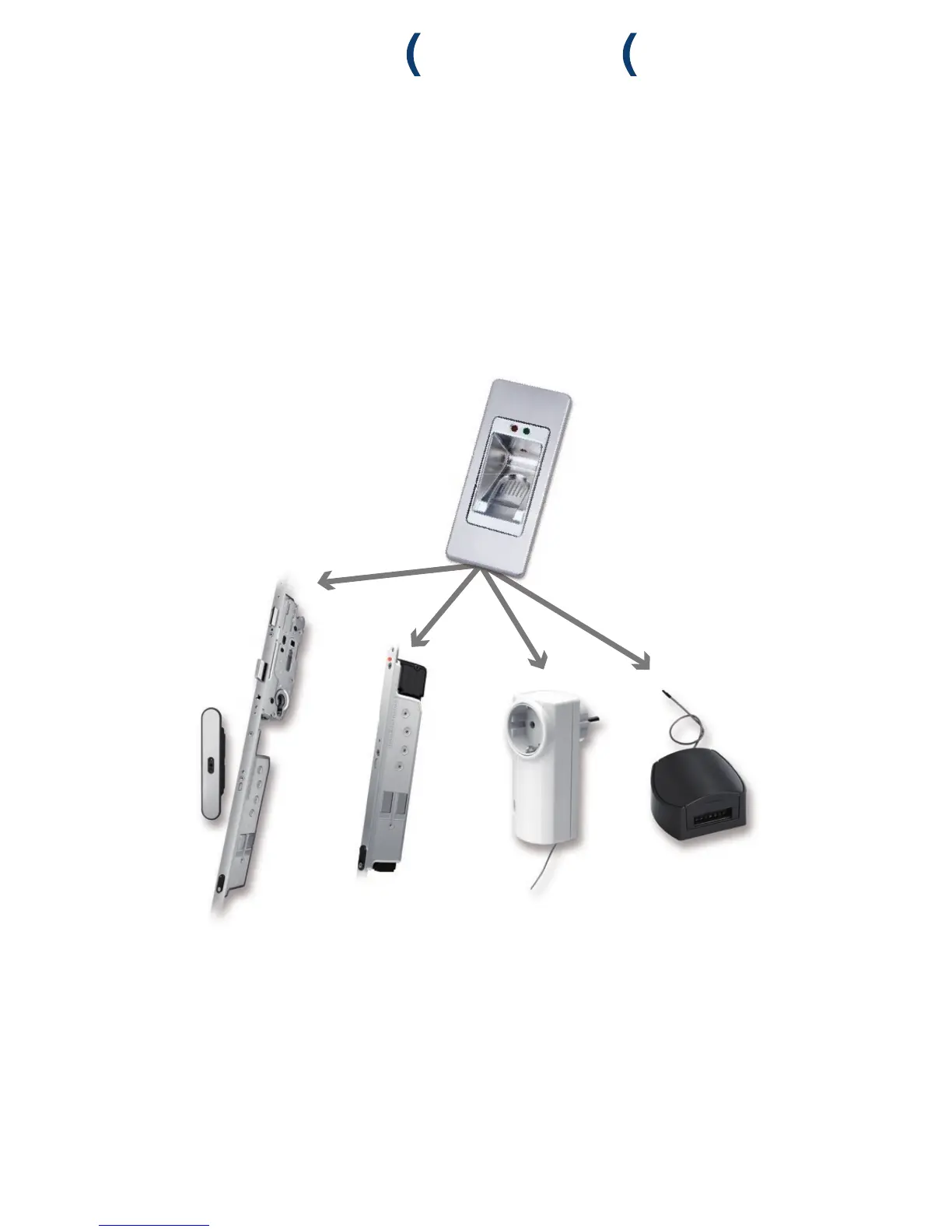 The communication between the radio fi ngerprint scanner and the motor lock’s control is wireless. Alterna-