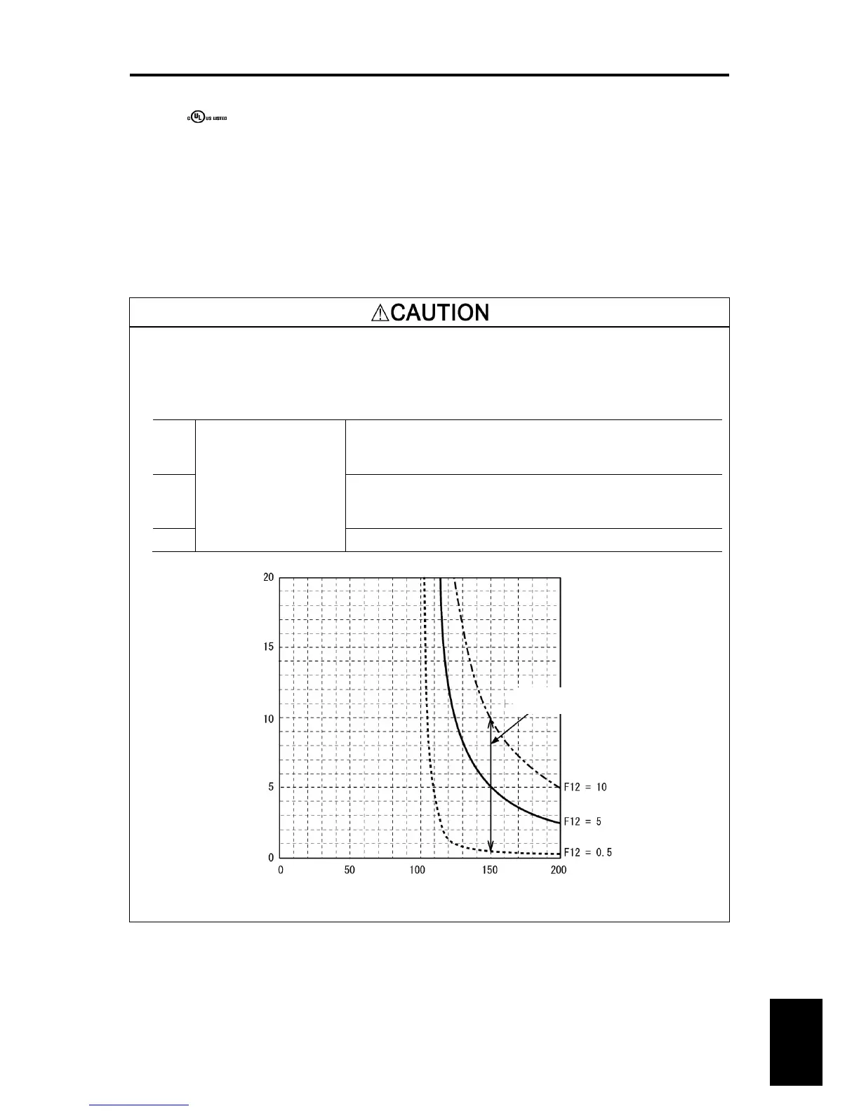 F12 (Thermal time constant) 0.5 to 75.0 min, Refer to the graph below.