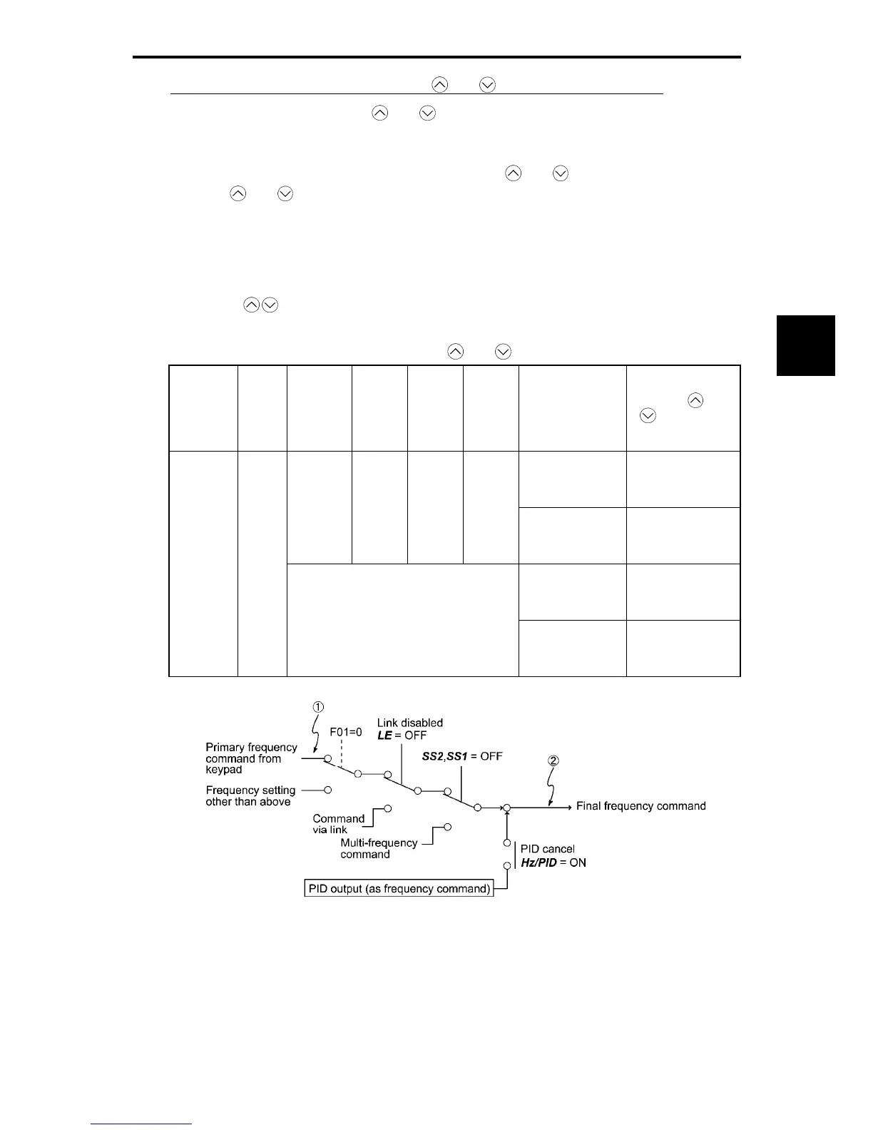 commands and the figure illustrates how the primary frequency command (1) entered via the keypad is
