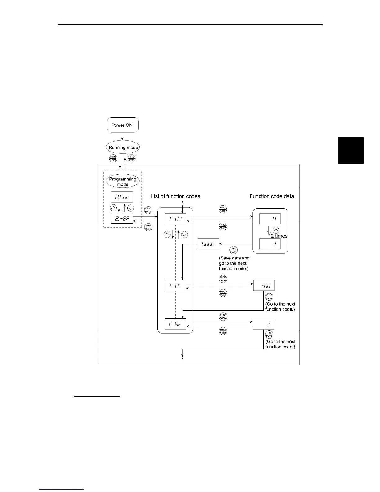 displayed on the LED monitor. You can refer to the function code data and change it again if necessary.