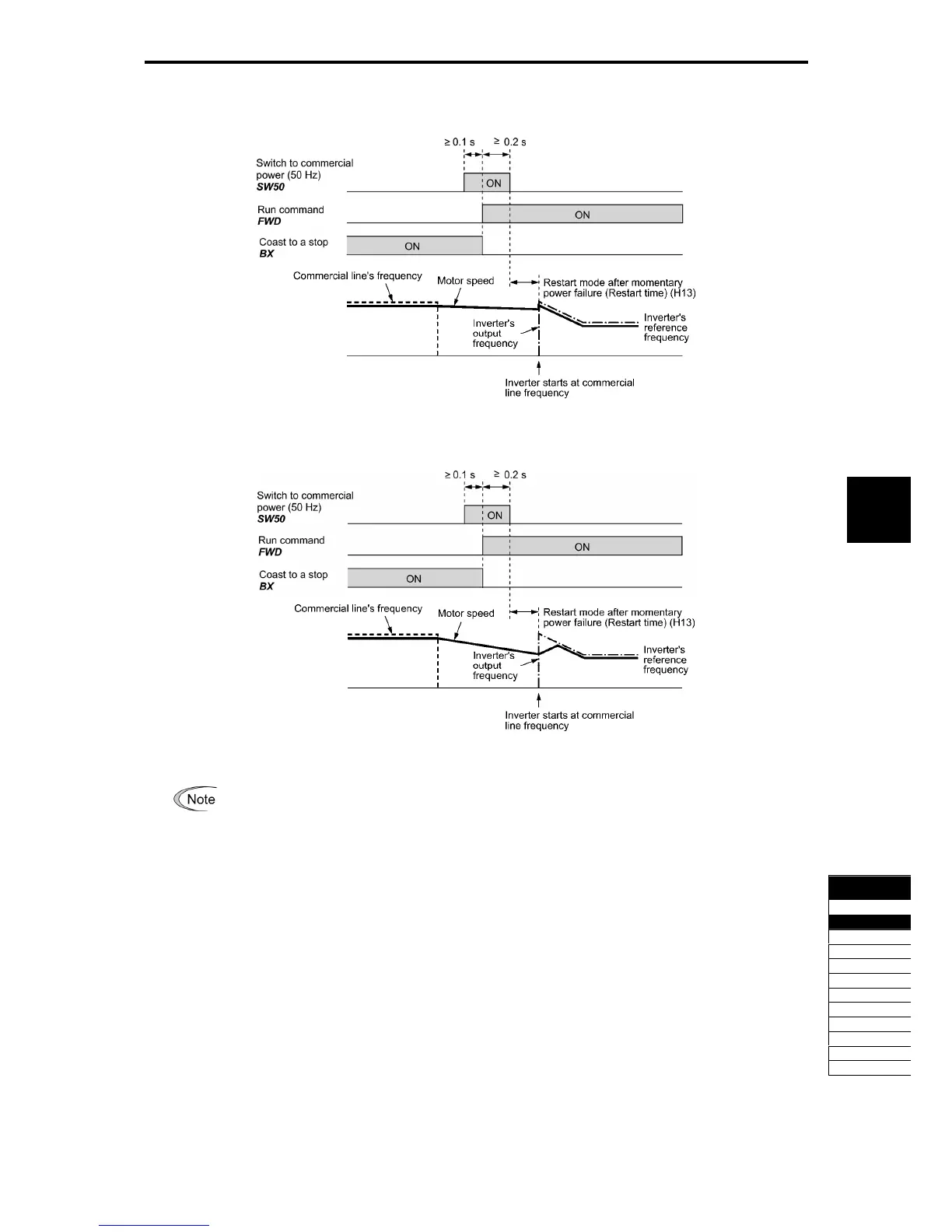 - Note that when the motor drive source is switched from the inverter to the commercial power,