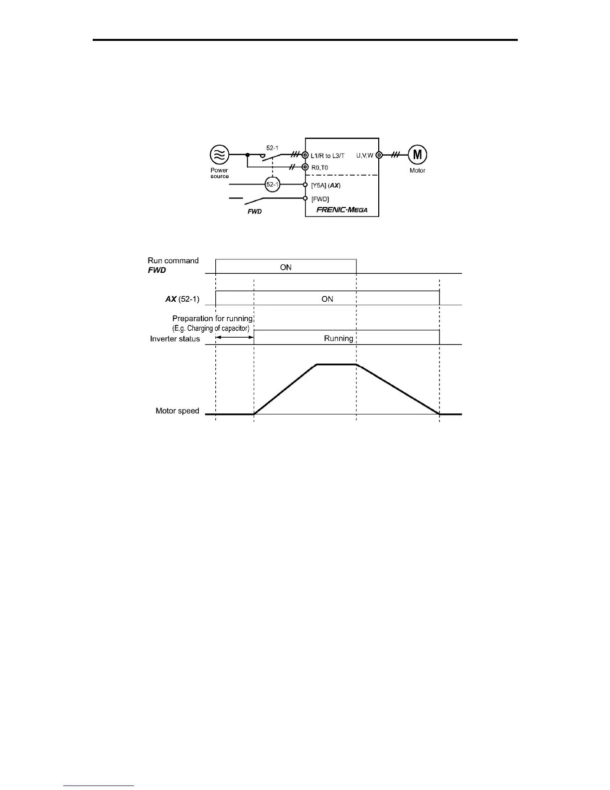 In response to the operation command, this function controls the magnetic contactor at the inverter input side.