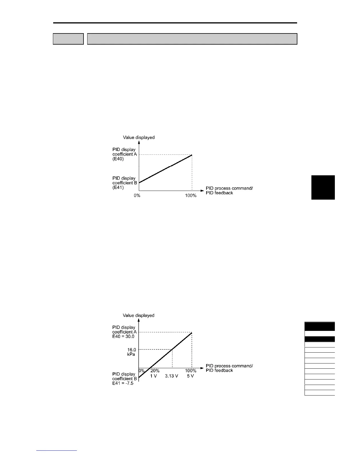 and E41 sets coefficient B "display when PID process command/PID feedback value is 0%."