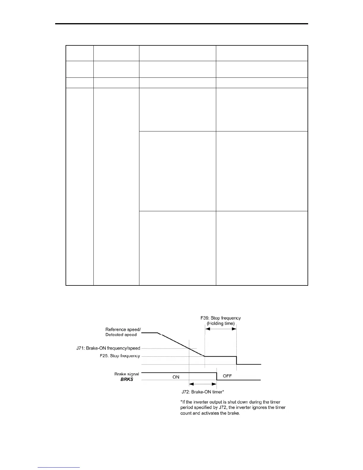 - Brake-on frequency selection (bit 3): 1 (Brake-on frequency) time chart