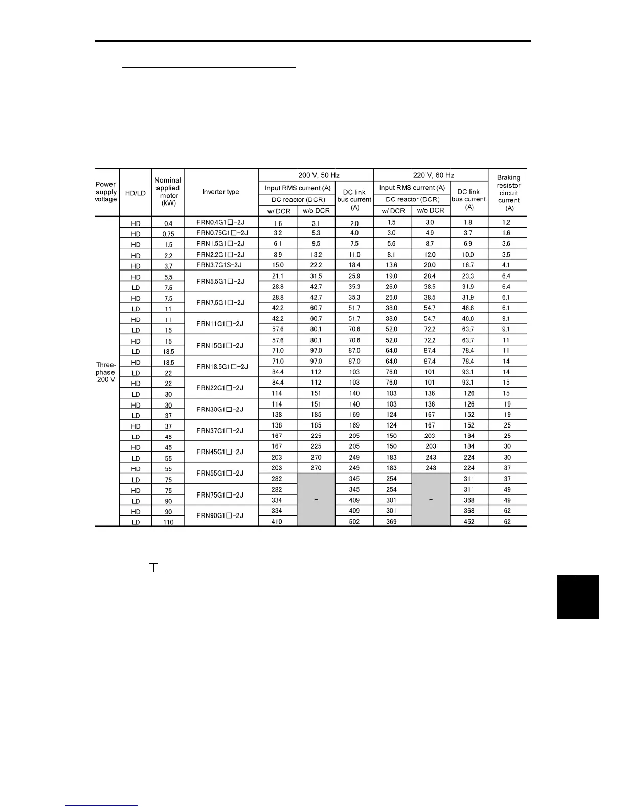 values matching the inverter capacity recommended by Fuji Electric.