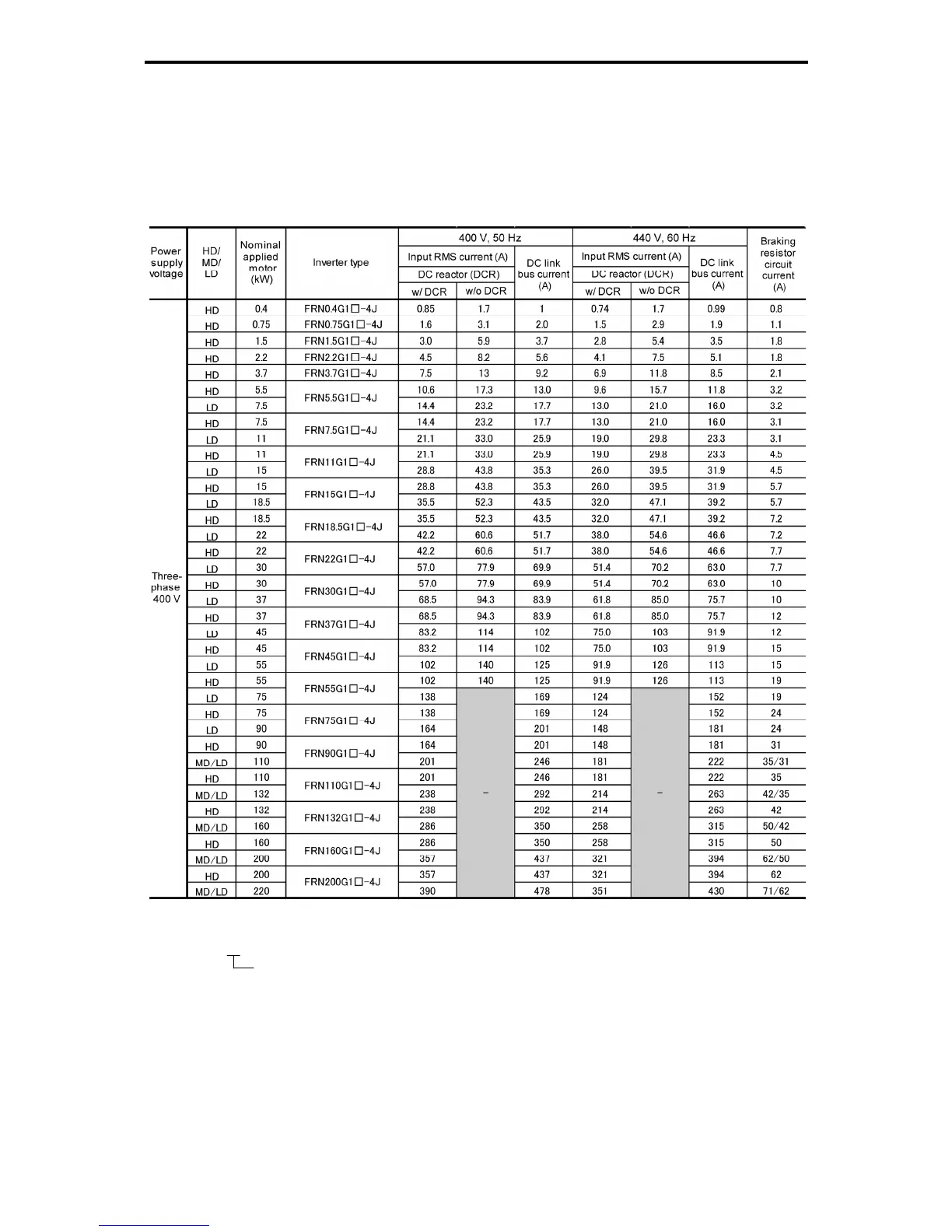 • The braking circuit current is always constant, independent of braking resistor specifications, including