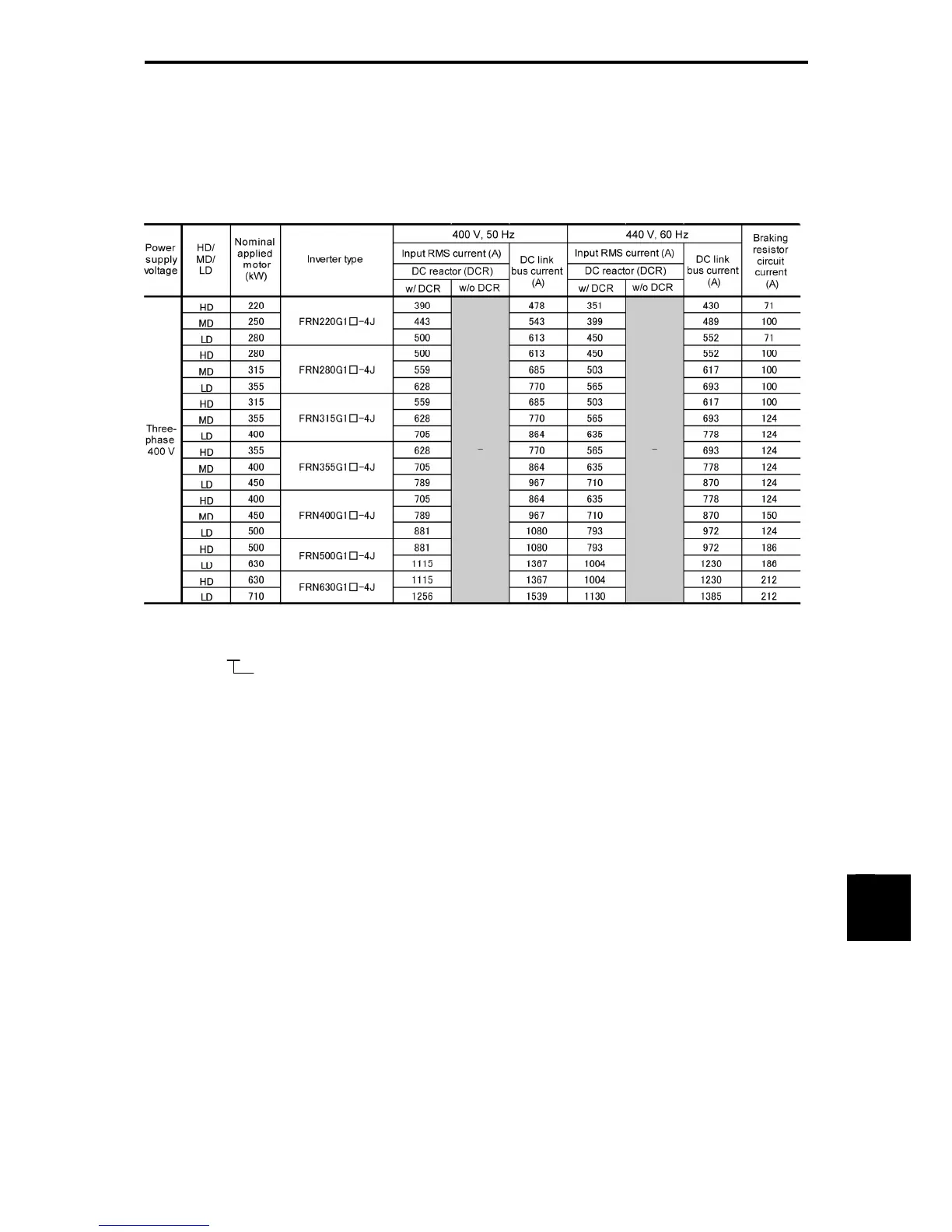 22 kW or below: Power supply capacity: 500 kVA, power supply impedance: 5%
