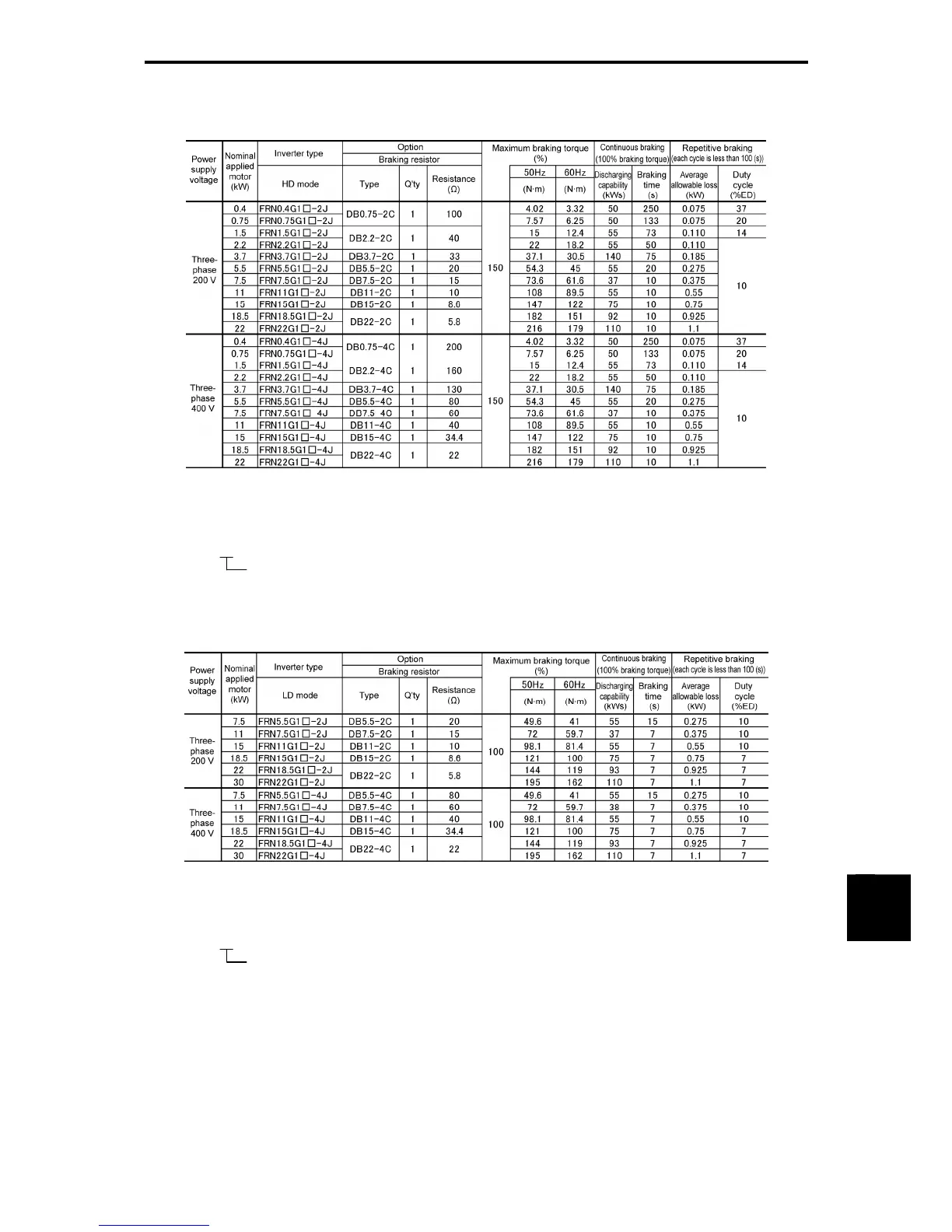 Table 11.4-6 Braking Resistor (10%ED Model) for LD-Mode Inverters