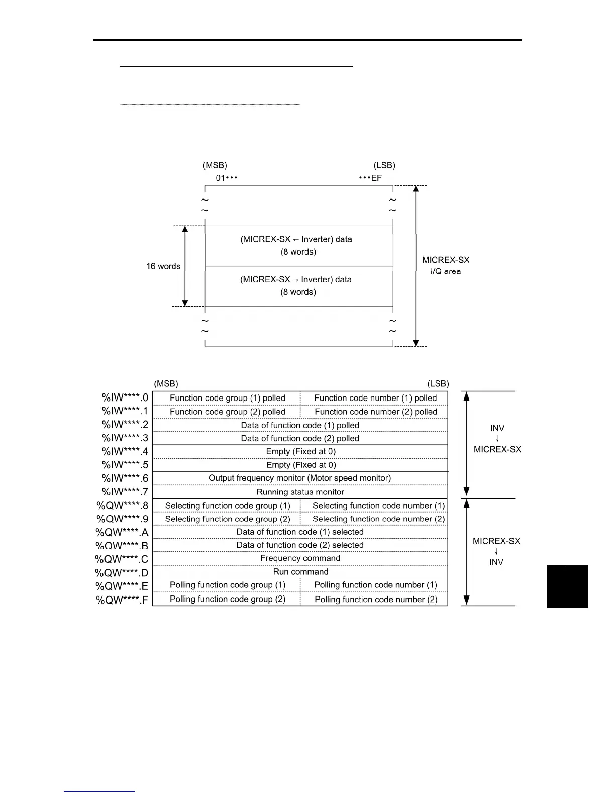 8-word area is used as a status area for reading out data from the inverter to the MICREX-SX, the upper