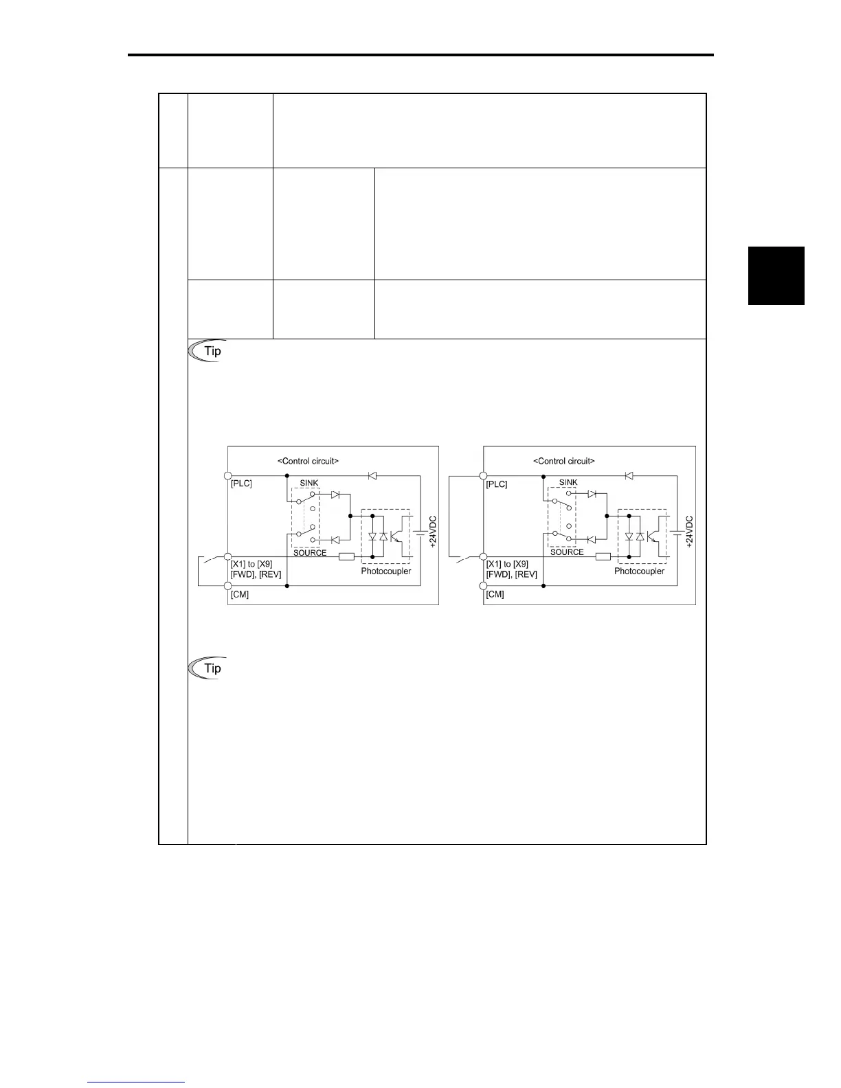 PLC using an external power supply turns ON or OFF control signal [X1] to [X9], [FWD],