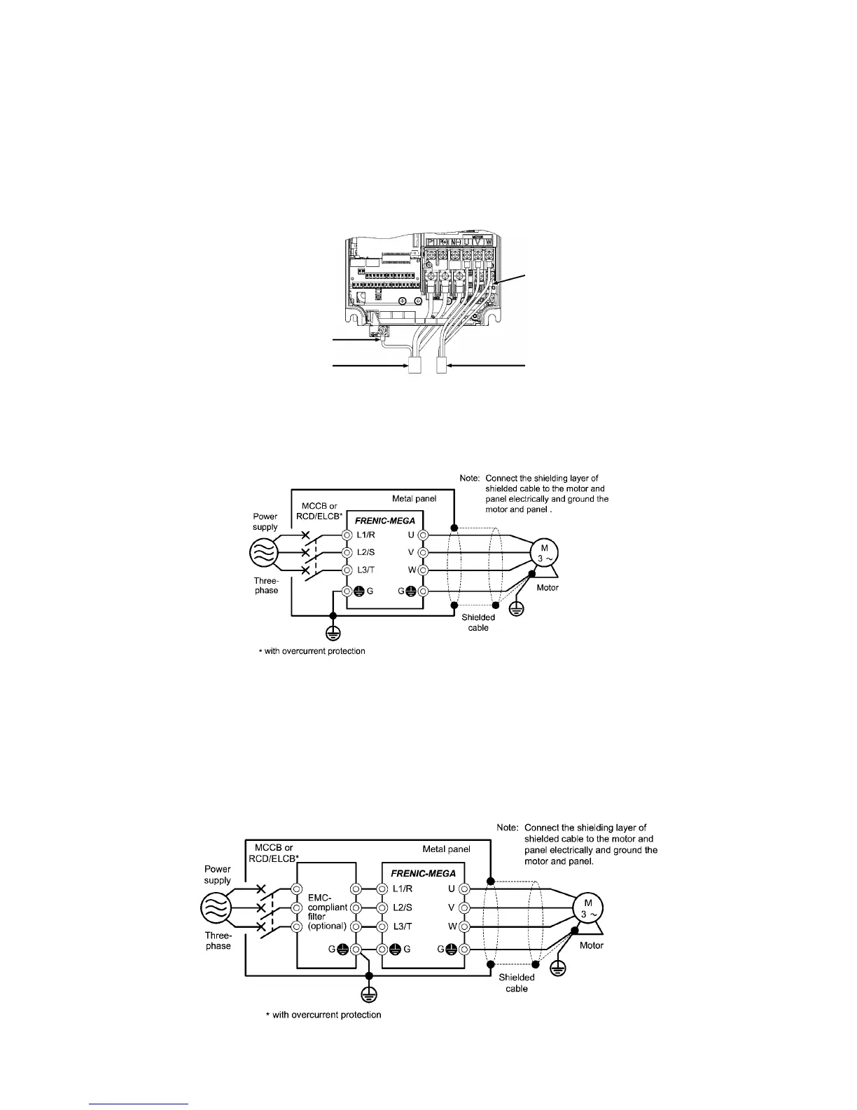 grounding terminal of the motor. Separate the input and output wires as far as possible, using wiring guides.