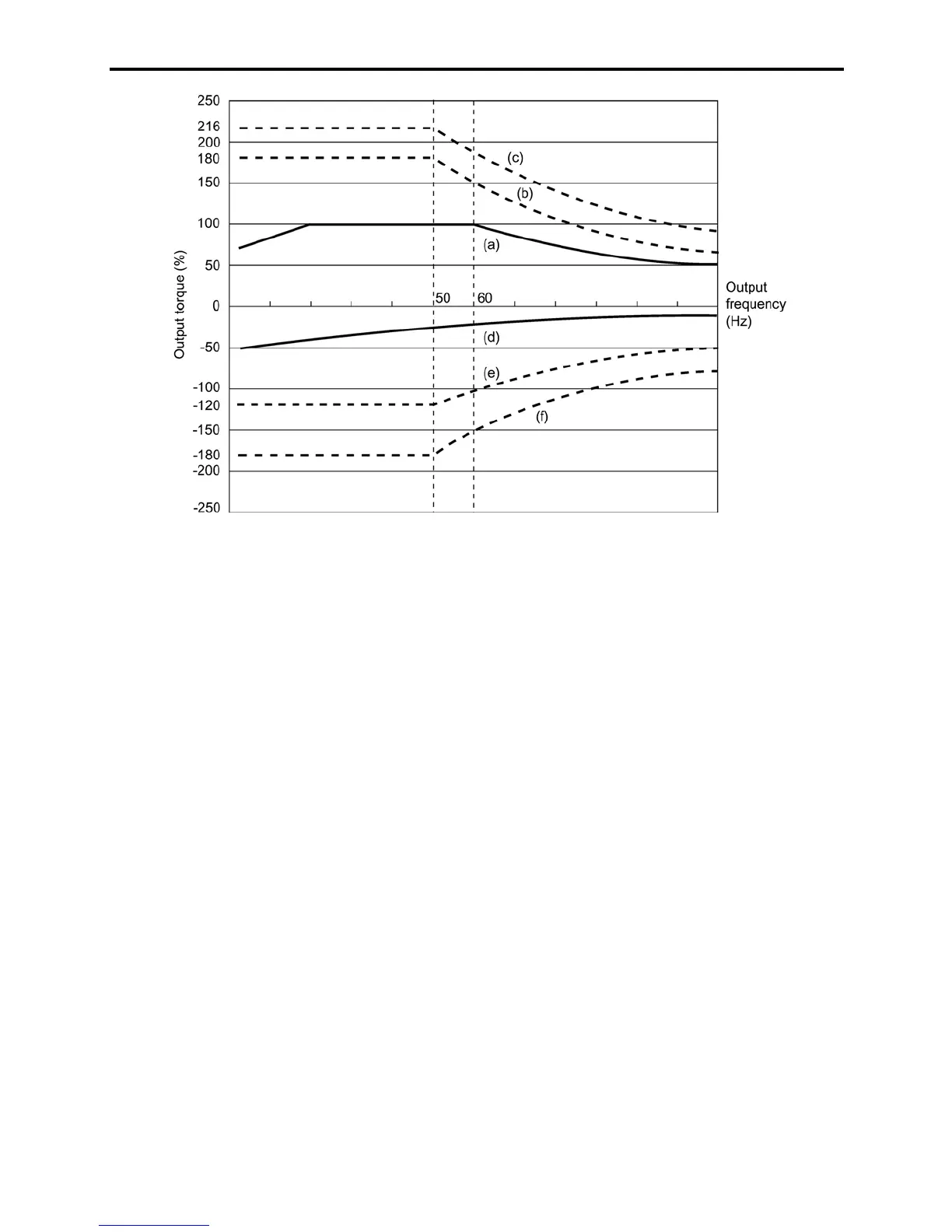 base frequency of 60 Hz, 100 % output torque can be obtained; at 50 Hz, the output torque is somewhat