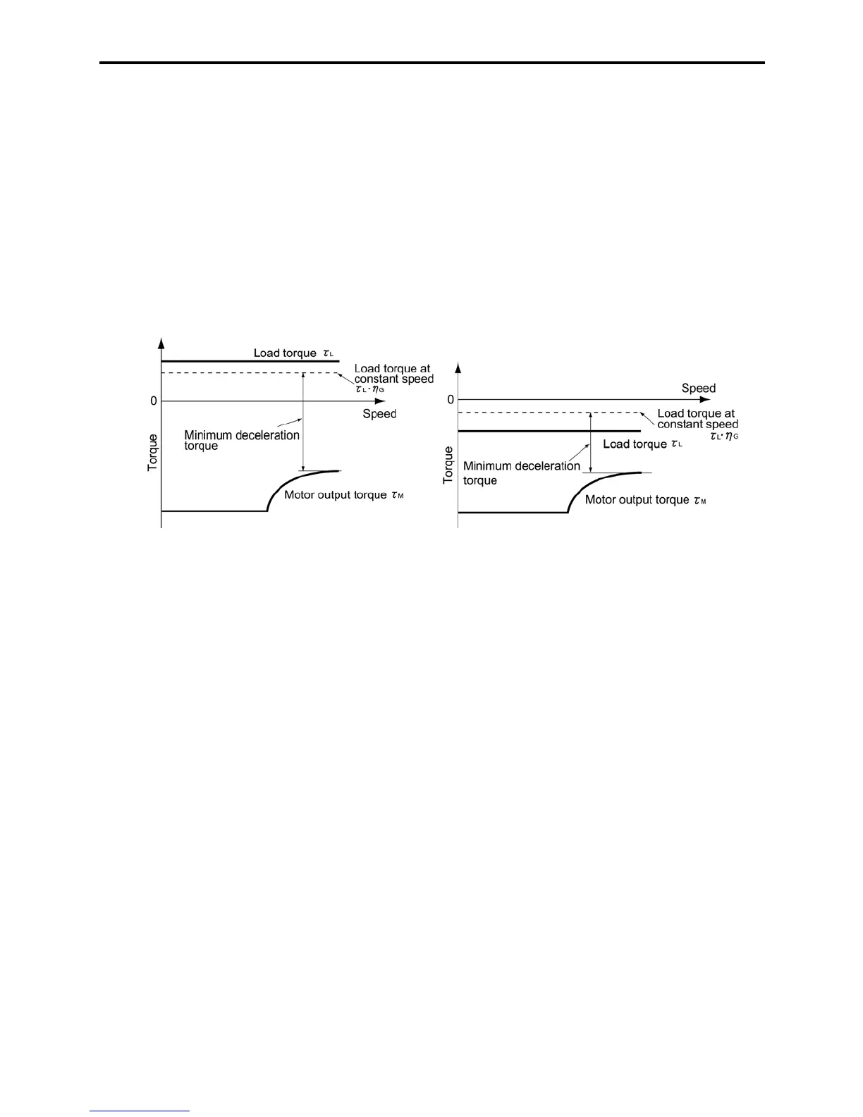 To calculate the deceleration time, check the motor deceleration torque characteristics for the whole