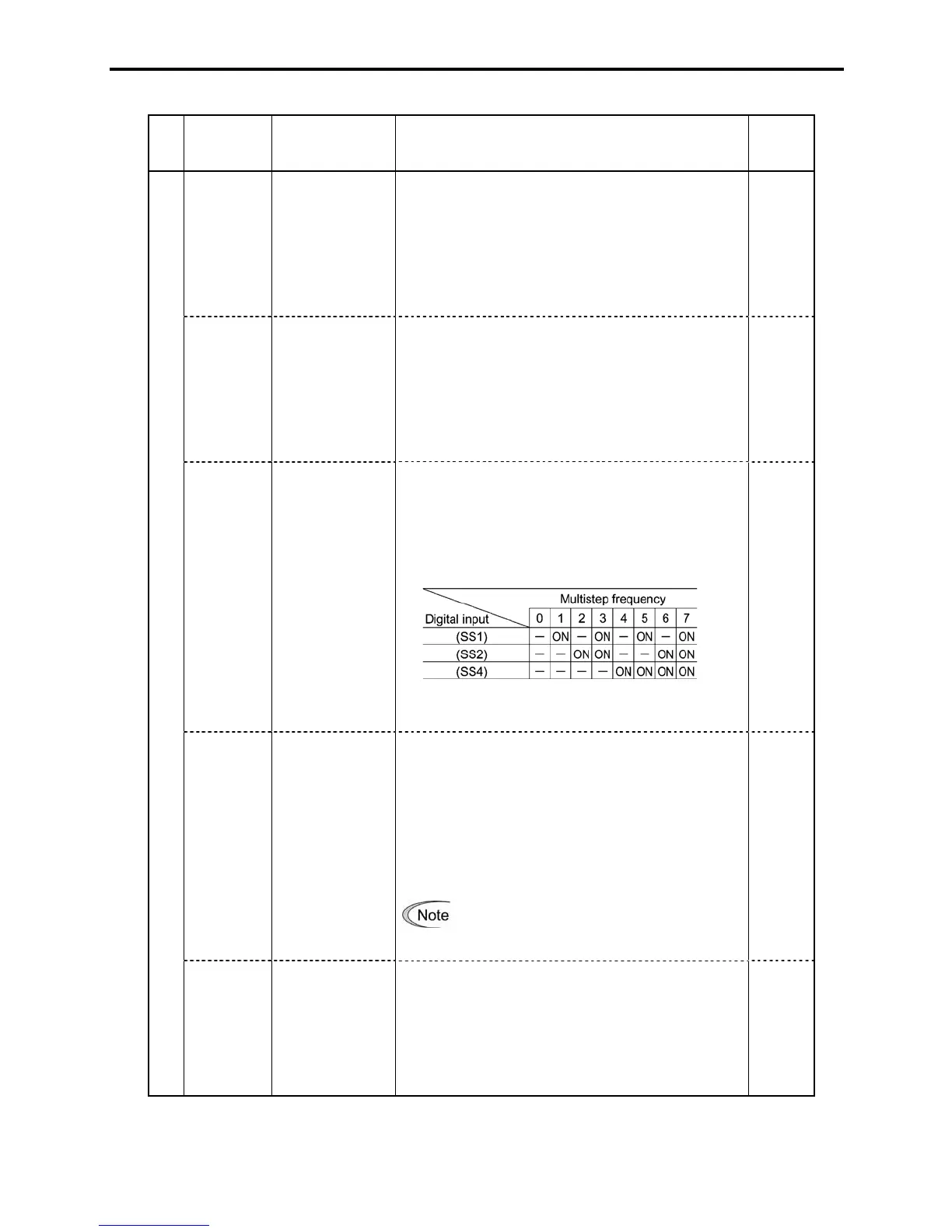 Multistep frequency 0 indicates the frequency set by