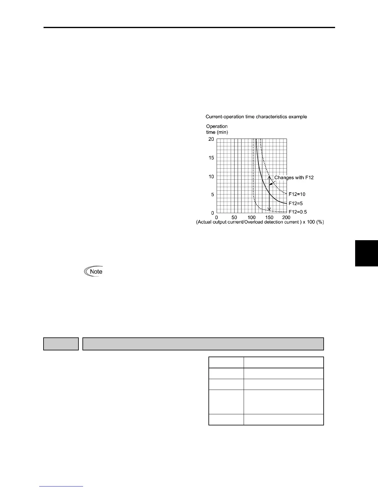 F12 specifies the thermal time constant of the motor. The inverter uses the time constant as an