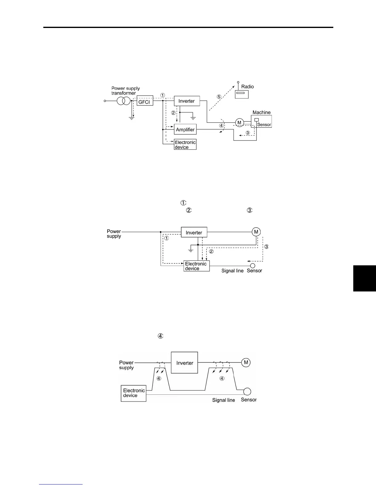sides of the inverter through which noise current is flowing, noise will be induced into those wires and
