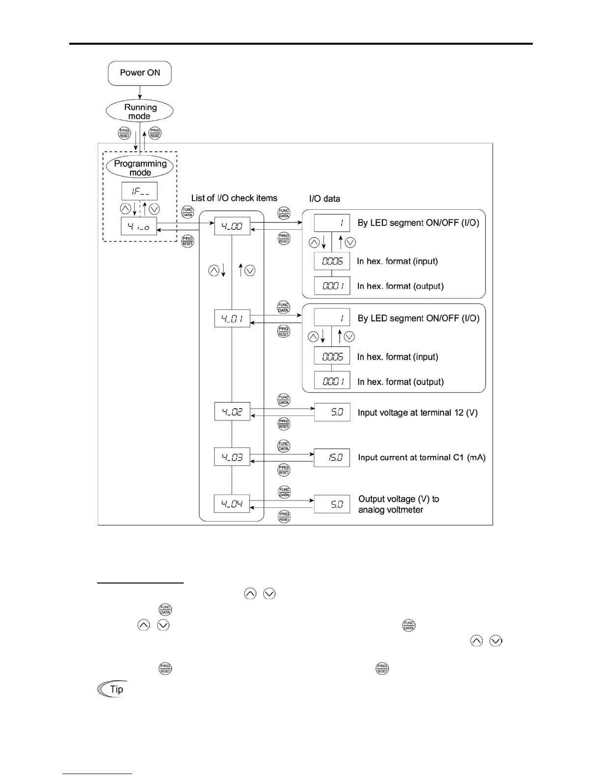 key to return to the I/O check item list. Press the key again to return to the menu.