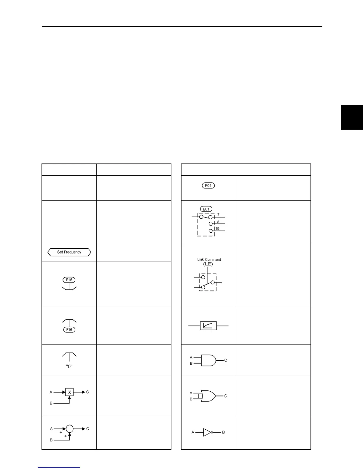 Table 4.1 lists the symbols commonly used in the block diagrams and their meanings with some examples.