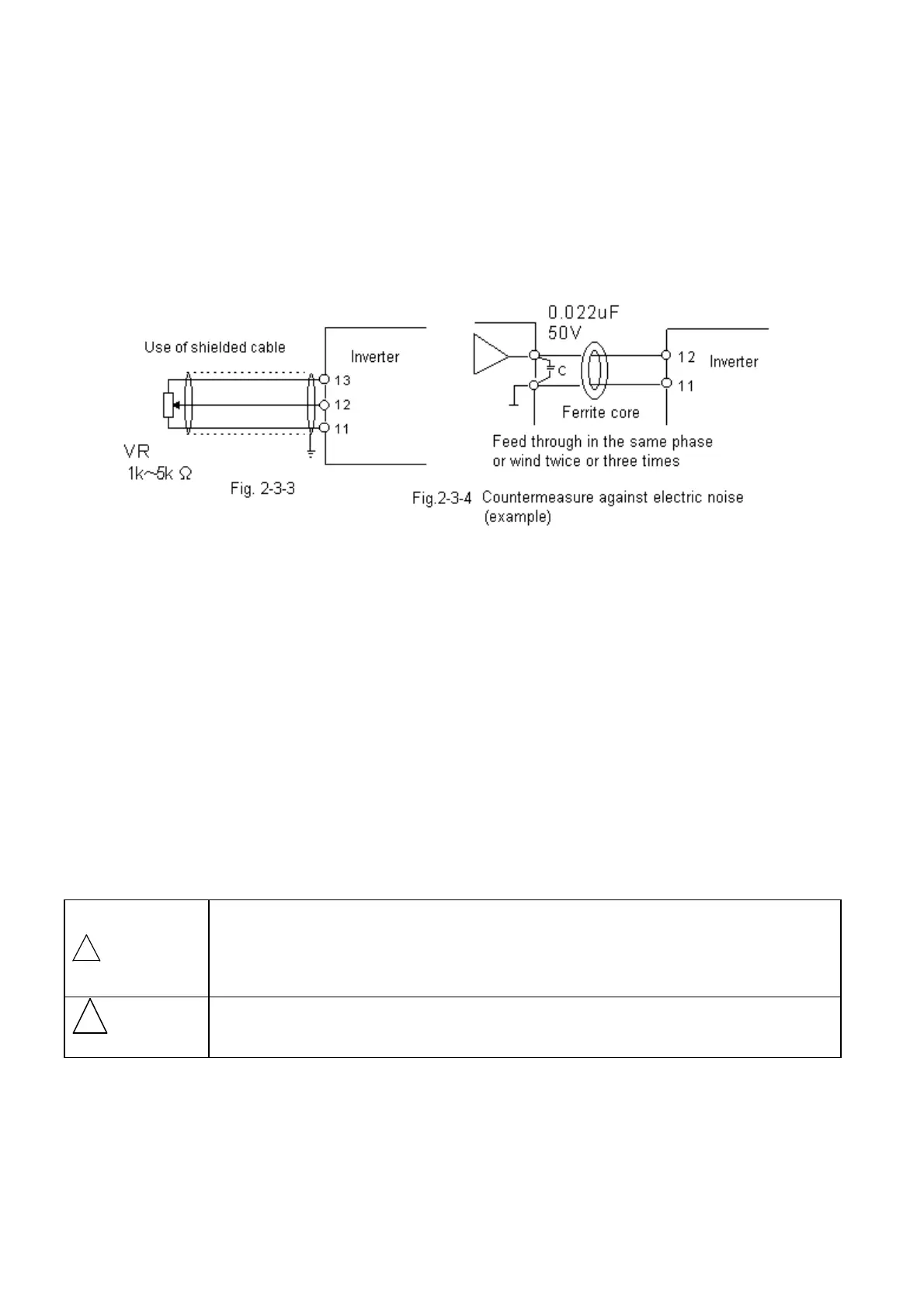 a. Route the wiring of the control terminals as far from the wiring of the main circuit as
