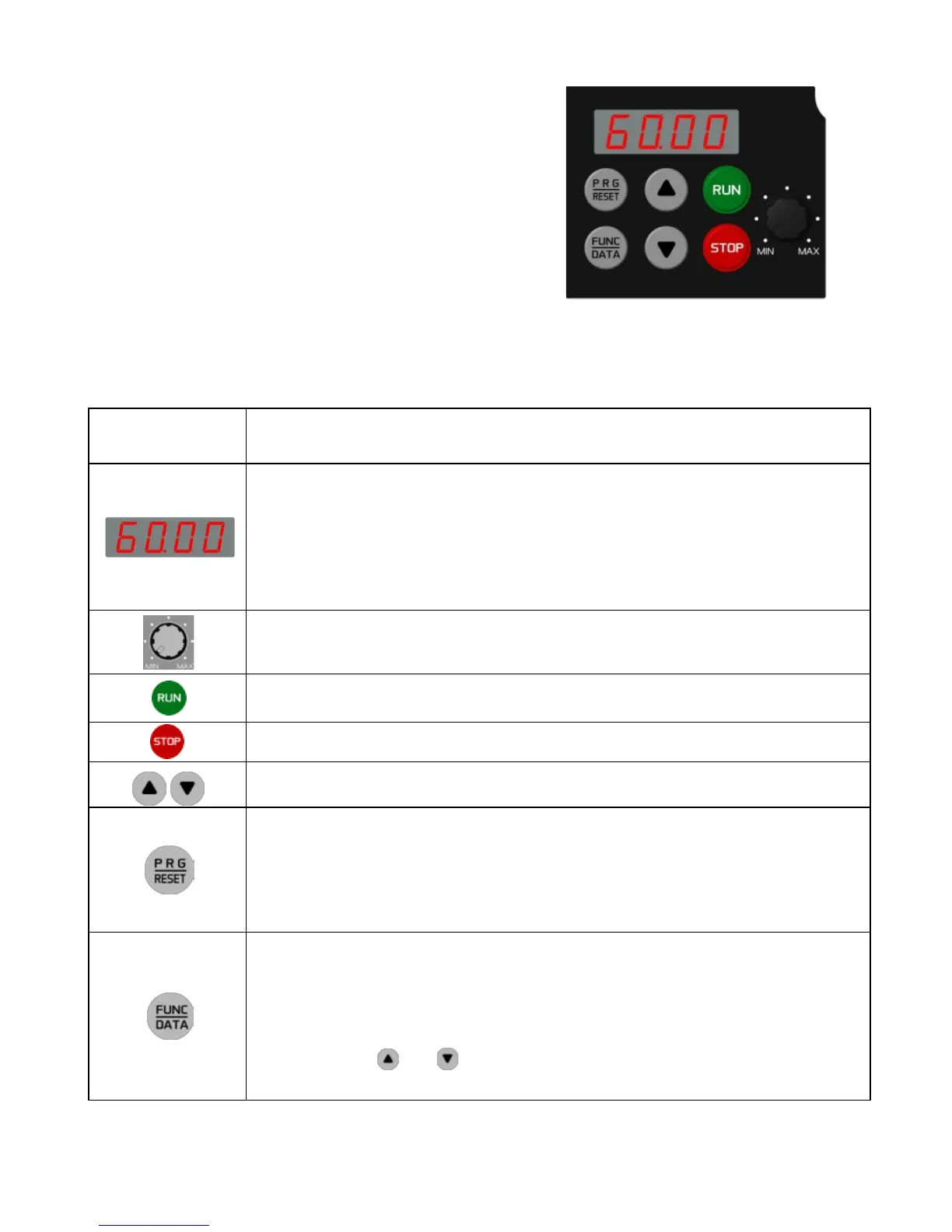 In Running mode: Pressing this key switches the inverter to Programming mode.