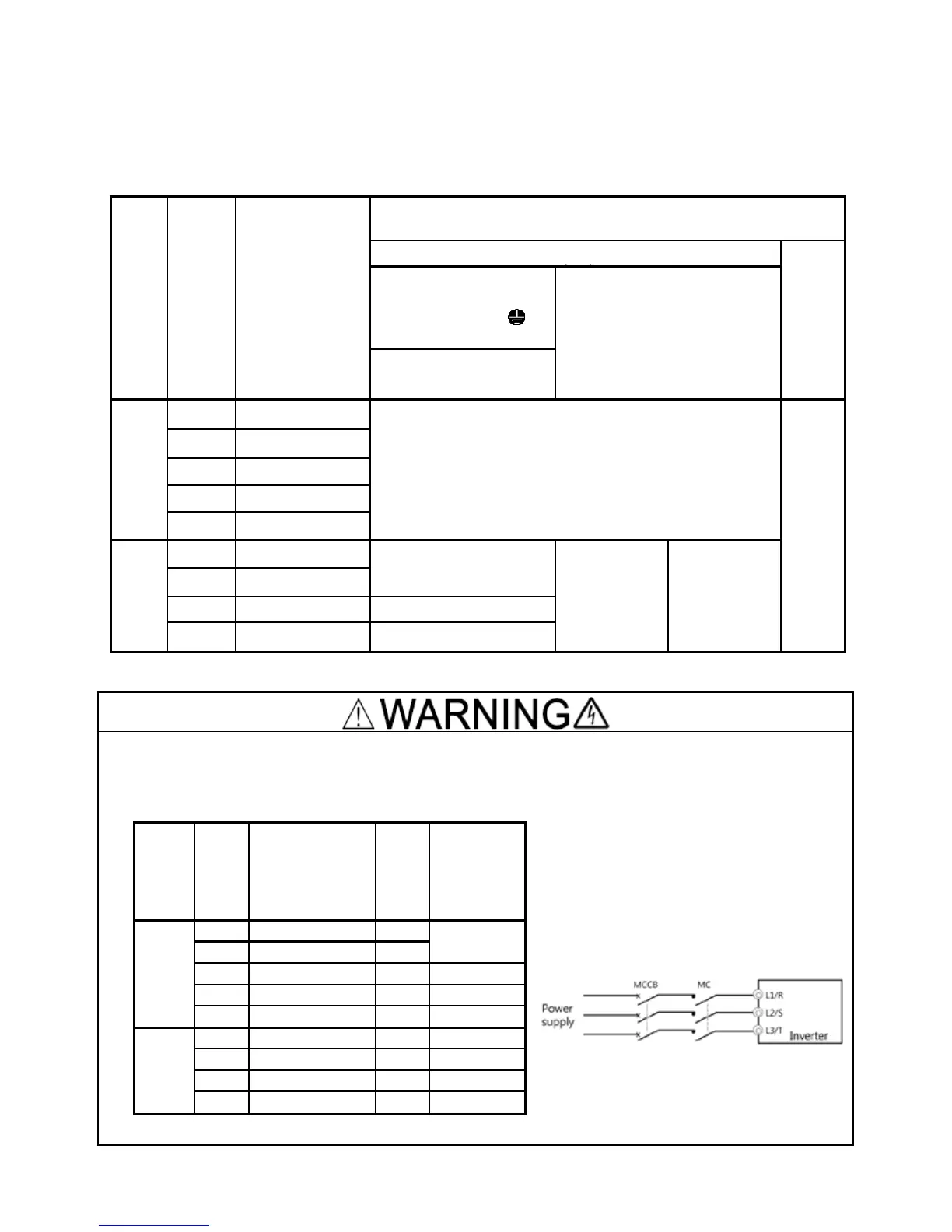 install the specified MCCB in the supply side (primary side) according to the following tables.