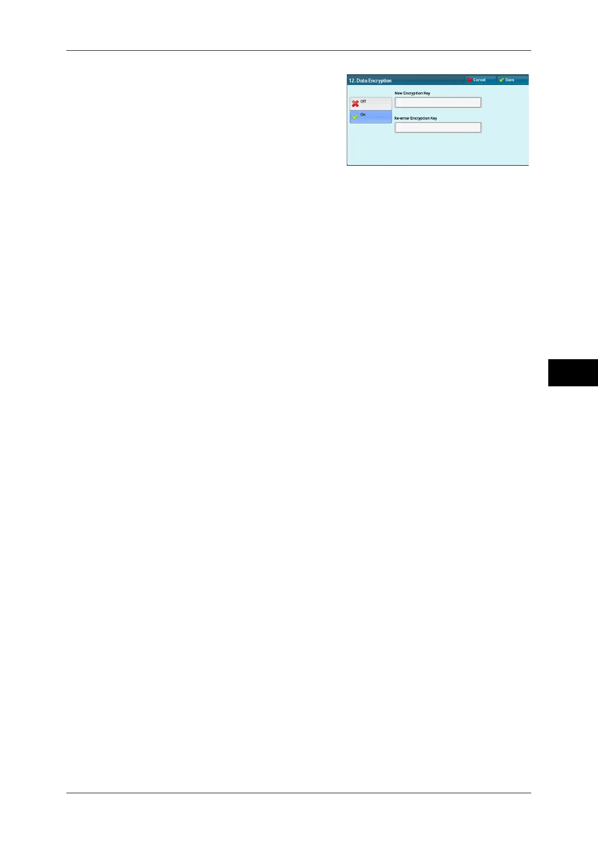 When you select/deselect data encryption or change the encryption key, you must restart the