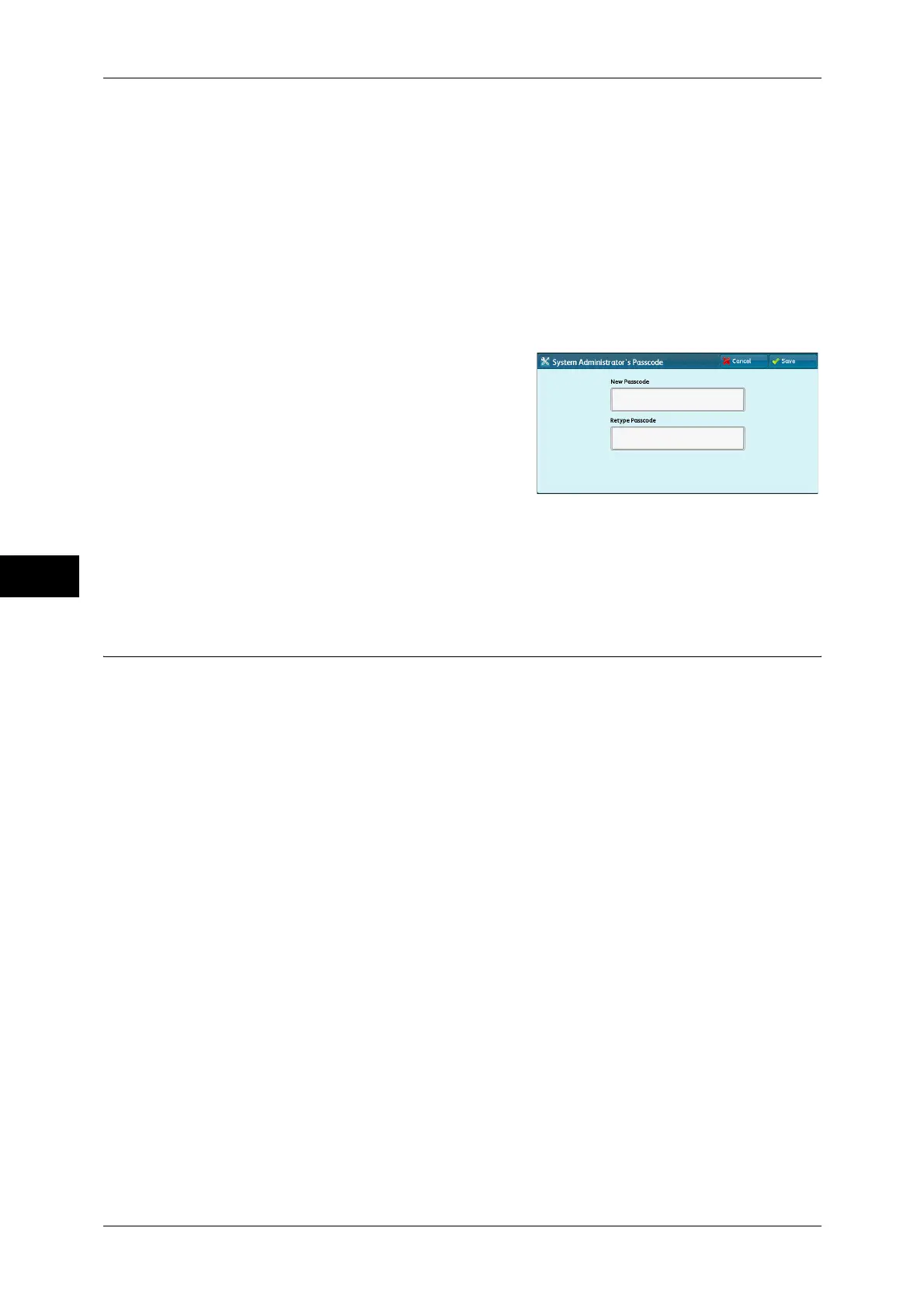 Set the passcode after setting the system administrator's user ID. You can set the passcode