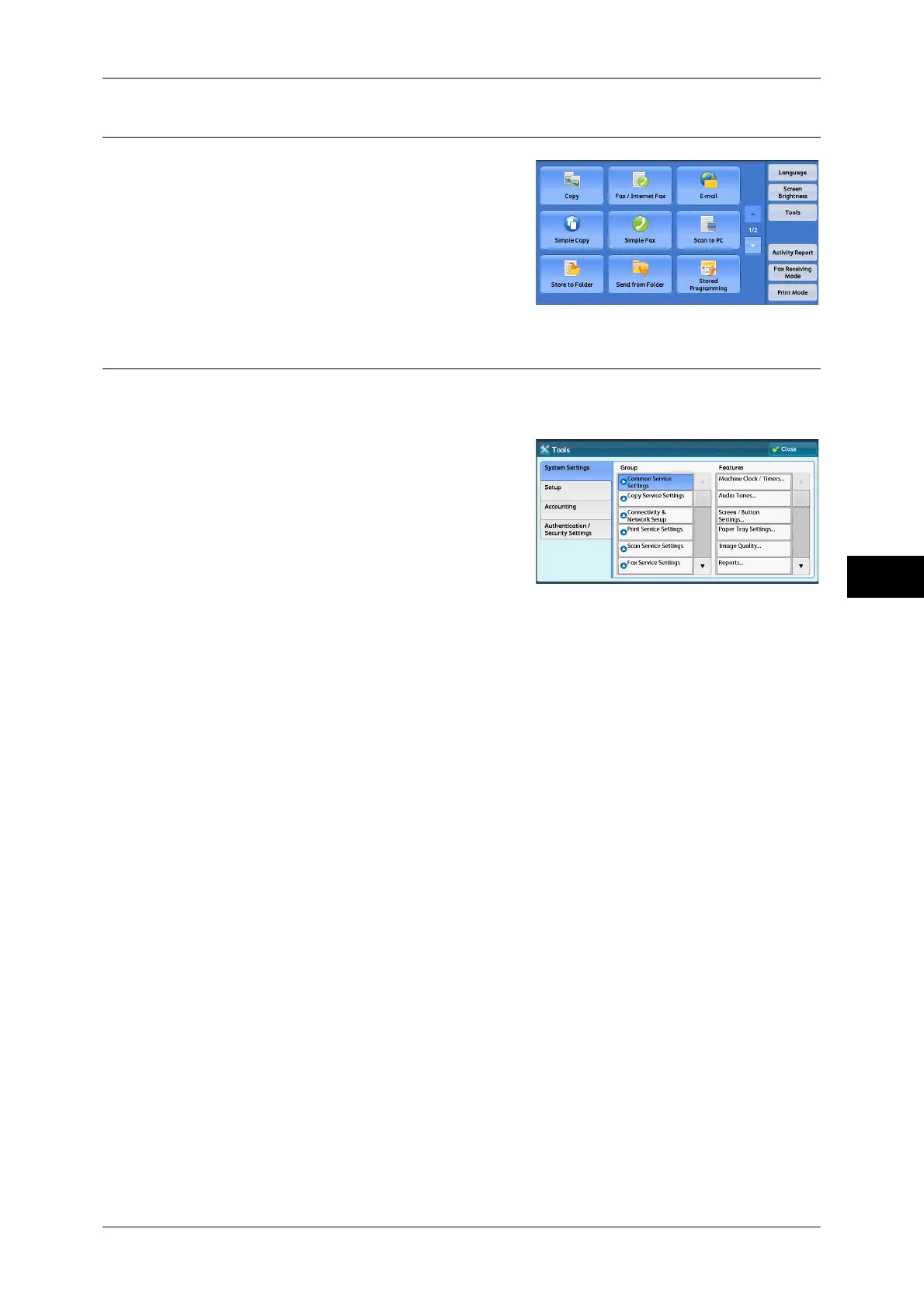 For the items that can be selected on the [Tools] screen, refer to "Tools Menu List" (P.112).