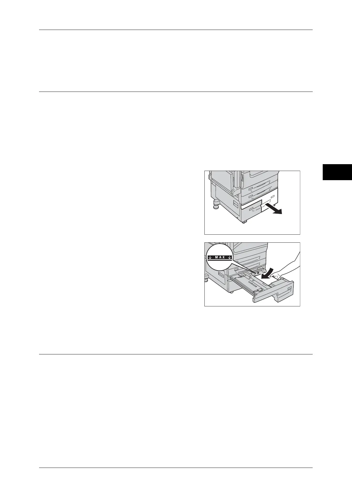 jams or any other troubles. First, remove the remaining paper from the tray, and then load