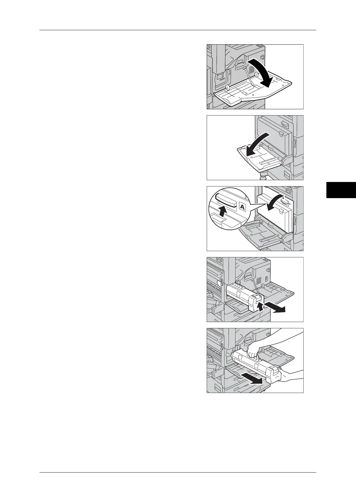 3 Pull the release handle of Cover A, and open